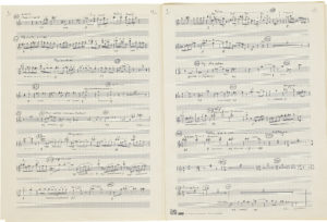 Le manuscrit est soigneusement noté au crayon sur papier à 16 portées et petits carreaux.