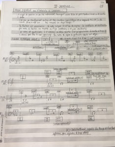 II : « Sabatios »…, III « Mouchos, coruxtas »…, IV « Déméture sur déméture »…, V « Sainte Apolline »…, VI « Averno de Satan »…, VII « Belle Lune »… La partition est émaillée d’abondantes indications pour l’exécution.
