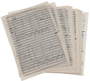 Guy MORANÇON (né 1927). — Manuscrit musical autographe, Tropes pour grand orgue et percussion, 1967-1968 ; 64 feuillets (paginés 2-65) 35 x 27 cm.