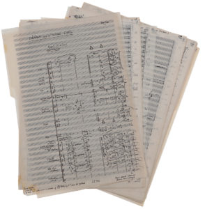 Serge NIGG (1924-2008). — Manuscrit musical autographe signé, Prémisses pour les “Mondes” d’Axël, 1964-1965 ; titre et 64 feuillets 38 x 27,5 cm (qqs découpes marginales pour le clichage, avec petites traces de scotch).