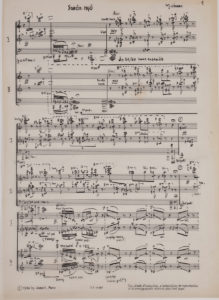 Le manuscrit est soigneusement noté à l’encre de Chine sur papier calque. Un feuillet liminaire donne la dédicace, la durée (20 minutes 30 environ), et des notes d’exécution.