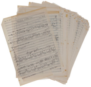 Louis SAGUER (1907-1991). — Manuscrit musical autographe signé, Musique d’après-midi, 1959 ; 90 feuillets 38 x 26,5 cm (découpes et coins coupés pour le clichage, traces de scotch).