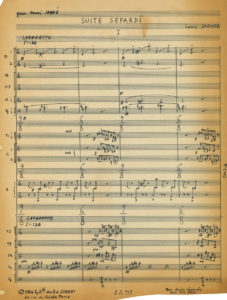 Louis SAGUER (1907-1991). — Manuscrit musical autographe signé, Suite Sefardi, [1963] ; 49 feuillets 38 x 27,5 cm (découpes et coins coupés pour le clichage, traces de scotch, brunissures).