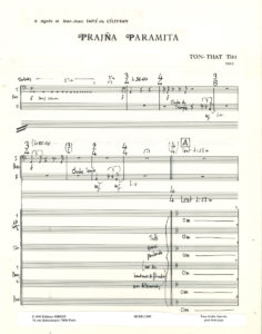 TÔN-THÂT Tiêt (né 1933). — Manuscrit musical autographe, Prajña Paramita, 1988 ; 63 feuillets 37 x 27 cm. Partition d’orchestre de cette œuvre pour 6 voix solistes et ensemble instrumental, commande du Festival d’Art sacré de Paris,...