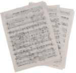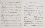 — On joint le matériel autographe des 8 parties sur papier calque : Percussions I,II (12 p.), Flûte (4 p.), Trombone (5 p.), Cor (6 p.), Hautbois (cor anglais) (5 p.), Clarinette (6 p.), Violoncelle (5 p.), Violon (5 p.).