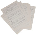 Le manuscrit est soigneusement noté à l’encre noire sur papier à 12 lignes, avec corrections au tipex et une collette modifiant 3 mesures, et la dernière page collée sur une version primitive ; 17 pages 35 x 26,5 cm.