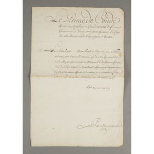 Commission donnée au Seigneur de Loppe maître d'hôtel du Roy " pour servir au traitement qui doit être fait par ordre de Sa Majesté, à la conduitte de Madame La Dauphine en France… "