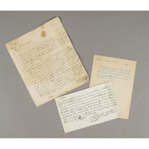 JOINT : Billet autographe signé de Charles Chardin à François Boissy d'Anglas. Paris, 1er septembre 1809, format oblong : " J'ai trouvé mille fois heureux de ne pas avoir un procès d'honneur, ni de fortune, porté devant votre tribunal, ou il parait que je serais jugé, sans apel [sic]…La Gerusalemme que je vous donne en place de la votre vaut le double, mais comment le prouver, elle est en Russie. Si je me suis embrouillé dans mes lettres d'après votre dire, je garde coppie des votres et des miennes…Vous voudrés bien verifier si la Gerusalemme qui a été collationée en presence des temoins est complete ".