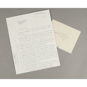 Lettre dactylographiée signée de Adolfo Costa del Rels à Raymond Escholier, conservateur au Petit-Palais