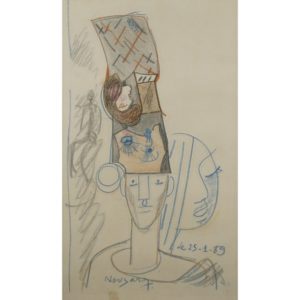 [NOUGARO (Claude) (1929-2004)]. Composition aux visages Crayon de couleur, sur papier Dessin …
