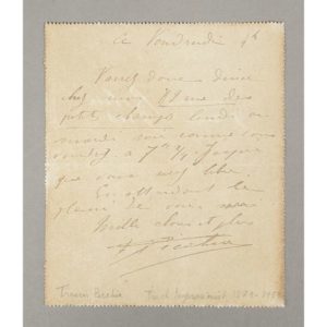 Lettre autographe signée, envoyée par pneumatique de Francis Picabia à Monsieur Robin