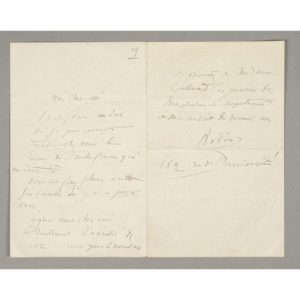 Lettre autographe signée d'Auguste Rodin à Paul Gallimard