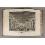 Magnifique livre de fête célébrant le voyage de Louis XV dans leur ville lors du traité d'Aix-La-Chapelle : les planches illustrent les splendeurs de la ville illuminée, et du bassin, lors des exceptionnelles joutes marines.