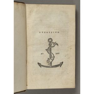 Deuxième édition aldine du fameux poème de Lucrèce, établie par Andrea Navagero ; Lucrèce est le premier poète classique imprimé par Alde, et cette édition est aussi le dernier ouvrage que l'imprimeur vénitien publia avant sa mort.