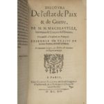 MACHIAVEL L'Art de la guerre. Paris, Claude Rigaud, 1614. [Reliés à la suite : Discours de …