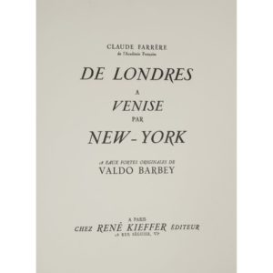 FARRERE (Claude) De Londres à Venise par New York Paris, Kieffer, 1949. In-4, en feuilles, sous …