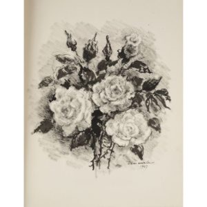 Un des 15 exemplaires numérotés sur pur fil à la forme de Lana, comprenant une suite des lithographies en sanguine et un dessin original relié au début de l'ouvrage : lavis à pleine page, signé en bas à droite et daté 1947, représentant un gros bouquet de fleurs.