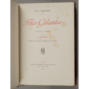 VERLAINE (Paul). Fêtes galantes. Paris, Société artistique du livre illustré, 1899. In-8, …