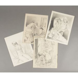 Ens. de 55 dessins originaux (env. 28 x 22 cm), au crayon, dont 8 sont signés, certains sous f. de papier calque annoté (par l'éditeur ?) ou sous f. de papier fin.
