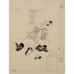 DUBOUT. COURTELINE Le Train de 8h47 Éditions du livre, 1951. Encre de chine, signé, 31,5x23,5cm. …