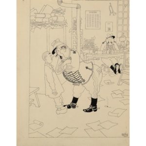 DUBOUT. COURTELINE Le Train de 8h47 Éditions du livre, 1951. Encre de chine, signé, 31,5x23,5cm. …