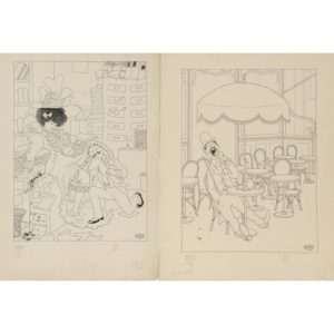 Éditions du livre, 1949. 2 dessins à l'encre de chine, signés, environ 32x24 cm. Œuvre intégral : p. 16, 7193 ; p. 104, 7218.