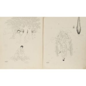 Éditions André Sauret, 1960. Ens. 4 dessins à l'encre de chine, tous signés, formats divers. Œuvre intégral : pour p. 37, 7865 - pour p. 81, 7880 - pour p. 93, 7885 - pour p. 153, 7897 -