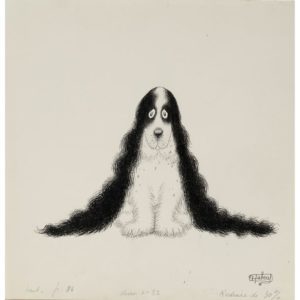 Les Éditions du livre, 1964. Encre de chine, signé, Chien aux oreilles très longues n° 52, p. 86, 28x27,5 cm. Œuvre intégral 8166.