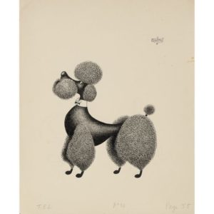 Les Éditions du livre, 1964. Encre de chine, signé, chien n° 33, p. 55, caniche neud papillon. 36x29,5 cm. Œuvre intégral 8147.