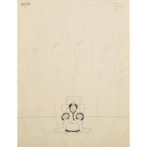 André Sauret, 1954. Encre de chine, "Premier intermède, acte I", le malade sous les ombres des médecins. Signé, trace de croquis au verso. 31,5x24 cm. Pas au cat. de l'Œuvre intégral.