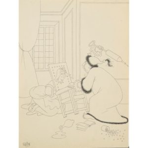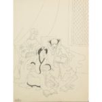 André Sauret, 1954. Ens. de 8 dessins à l'encre de chine, tous signés, env. 32x24 cm. Œuvre intégral : frontispice, 7546 - pour acte I, sc. 7, p. 65, 7552 - pour acte I, sc. 5, p. 53, 7551 - pour acte II, sc. 5, p. 87, 7553 - pour acte II, sc. 6, p. 115, 7556 - pour acte 8-II, sc. 2, p. 87, 7553 - pour acte II, sc. 9, p. 135, 7558 - pour acte III, sc. 10, p. 181, 7565.Joint 2 dessins, pas cat. de l'Œuvre intégral : dessin à l'encre de chine, ""Fin acte II"", 13x16,5 cm - une planche réunissant 3 dessins signés. "