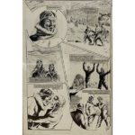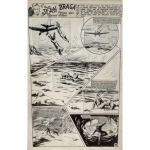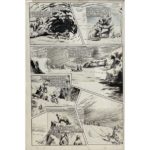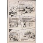 BARAY Georges-Bernard ( ) BARAY. “Jean Braga Capitaine à Quinze ans”. " Jean Braga capitaine à quinze ans ". Ensemble de 6 planches, paginées 18 à 23. La série fut publiée par SAGE Editions dès 1950 au sommaire de " Youmbo Magazine ". Encre de chine sur papier, plusieurs cases avec repentirs et collages. Format 27 x 38,5 cm. EXCELLENT ETAT de conservation. 38,5 x 27 cm