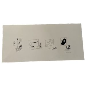 PETIT-ROULET Philippe (Né en 1953) " Museum ". Suite de 4 dessins originaux formant une continuité légèrement ironique sur la façon de regarder des œuvres d'art au musée, publiée au sein de la revue " The New Yorker ", reprise dans le titre " Spots " paru aux éditions Cornélius en 2014. Réalisation sur papier création de format 23 x 55 cm. Technique : encre de Chine et encres de couleurs. Rustine sur le second dessin. Signature en bas à droite. (ÉTAT NEUF, conservation parfaite.)