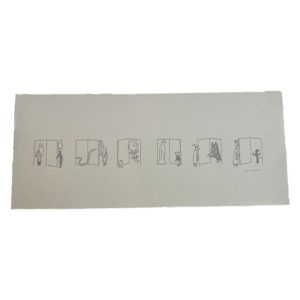 PETIT-ROULET Philippe (Né en 1953) "6 Doors ". Suite de 6 dessins originaux formant une histoire amusante sur la surprise du " Qui frappe à la porte ? ", publiée au sein de la revue " The New Yorker ", reprise dans le titre " Spots " paru aux éditions Cornélius en 2014. Chaque dessin est une composition étudiée et le résultat est d'une lisibilité parfaite. Réalisation sur papier création de format 24 x 57 cm. Technique : encre de Chine et encres de couleurs. Signature en bas à droite. (ÉTAT NEUF, conservation parfaite.)
