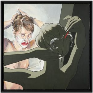 BERTHET Philippe (Né en 1956) & PAHLAVI Axel (Né en 1975). " Reflet 2 ". Réalisation commune des deux artistes à l'occasion de l'exposition " Quelques instants plus tard " de 2012. Technique : acrylique sur toile monté sur châssis de format 100 x 100 cm, encadrement professionnel. (ÉTAT NEUF, conservation parfaite.)
