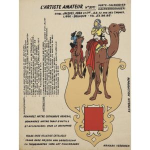 HERGÉ Studios Affiche " L'Artiste amateur - Tintin Le Crabe aux pinces d'or ". Affiche impression sérigraphiée de format 30 x 41 cm. Avec instructions français & néerlandais. Planche à coller sur support bois adapté afin de fabriquer soi-même divers présentoirs. Etablissements Jacques OBRA, liège Belgique 1954. TRES BON ETAT Papier légèrement jauni avec traces de manipulation et d'humidité en contours bas. © Hergé/Moulinsart - 2021.