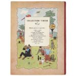 HERGÉ (Georges RÉMI) (1907-1983) Les Aventures de Tintin. " Le Lotus bleu " - Éditions Casterman - Couleurs. Album cartonné dos rouge. Première édition couleurs. 4ème plat B1 de 1946 avec pull Haddock en deux couleurs. Sur page de titre et page 1, mention titre en bleu. Cahier impression sur " gros " papier. (TRÈS BON ÉTAT. Plats très propres, retouches couleurs sur tout le contour et coins légèrement émoussés. Le 4ème plat est restauré en bas droit près du dos et comporte quelques tâches près de Milou. Première page de garde partiellement fendue sur sa hauteur, les dernières sont superbes. Cahier bien solidaire et papier jauni, courant sur cette version " gros " papier. Près de 15 pages comportent de petites déchirures en partie basse, aucune avec manque.) © Hergé/Moulinsart - 2021.