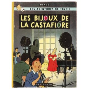 HERGÉ (Georges RÉMI) (1907-1983) Les Aventures de Tintin. " Les Bijoux de la Castafiore " - Éditions Casterman - Couleurs. Album cartonné dos jaune. 4ème plat B34 de 1963. Édition originale belge (Imprimerie Casterman). (BON ÉTAT. Plats très propres mais avec restaurations couleurs visibles. Dos complet avec restaurations couleurs visibles. Cahier bien solidaire et très propre. Coins bas très beaux et coins hauts restaurés avec reprise couleurs. Tampon avec nom d'un ancien propriétaire en page préface.) © Hergé/Moulinsart - 2021.