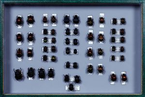 P. palliatus (1 couple), P. tridens (9 couples), P. amethystinus (1 coulple), P. quadridenis (3 couples), P. damocles (1 couple), P. amythaon (4 couples) ainsi que Sulcophaenaeus velutinus et Diabroctis mimas. Coffret : 39X26 cm