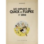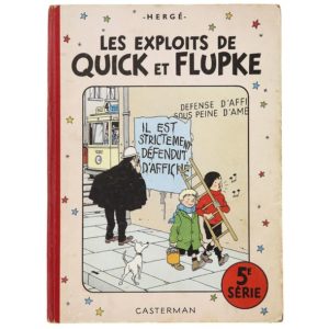 HERGÉ (Georges RÉMI) (1907-1983) Quick et Flupke. " Les Exploits de Quick et Flupke " - Éditions Casterman - Couleurs. Album cartonné dos rouge, mention 5e Série. Non restauré. 4ème plat B7 de 1952. (TRÈS BON ÉTAT. 1er et 4ème plats avec frottements et petites pertes de couleurs, quelques taches et coins émoussés. Quelques rayures de 2/3 cm au 4ème plat. Dos complet, bonne tenue, avec coiffes émoussées et perte de couleurs. Cahier de 32 pages bien solidaire et très propre malgré quelques taches.) © Hergé/Moulinsart - 2021.