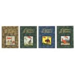 HERGÉ (Rémi Georges) (1907 - 1983) Ensemble des cinq albums (collection complète) " L'Oiseau de France ". Ensemble des 5 titres ; En Afrique, En Asie, En Océanie, En Amérique, En Europe. Ils comportent tous une petite image collée au premier plat. Ces albums cartonnés sous reliure simili cuir ne comportent pas de date de D.L (Dépôt Légal). Editions Hédoin et Casterman. Années 1935 à 1937. Format 24 x 31 cm. TRES BON ETAT de l'ensemble. Coins émoussés et légers frottements des plats. © Hergé/Moulinsart - 2021.
