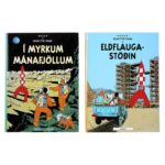 HERGÉ (Georges RÉMI) (1907-1983) Les Aventures de Tintin - Éditions étrangères ou langues régionales. Lot de deux albums en version cartonnée. " Eldfauga-stödin / Objectif Lune ". Éditions Fjölvi en Islandais. " I Myrkum Manafjöllum / On a marché sur la Lune ". Éditions Fjölvi en Islandais. (TRÈS BON ÉTAT. Insolation/décoloration du haut des dos. Coiffe haute du premier plat émoussée et coins hauts droit plissés pour le second titre.) © Hergé/Moulinsart - 2021.