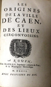 [NORMANDIE - HUET (Pierre Daniel)]. — Les Origines de la ville de Caen, et des lieux circonvoisins. — A Rouen, Chez Maurry, Imprimeur, 1702. — In-12, demi-veau, dos à nerfs orné (reliure pastiche).