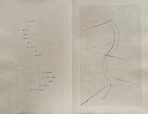 Paris, Pierre Lecuire, 1995. In-folio, en feuilles, couverture titrée en rouge, étui de l'éditeur de papier-bois gris clair. Édition originale, composée et mise en page par Pierre Lecuire et ornée de 9 pointes sèches originales de Geneviève Asse.