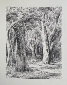 GENEVOIX (Maurice). Forêt voisine. Paris, Ibid., s.d. [1949]. In-4, en feuilles, couverture, chemise et étui de l'éditeur. Édition illustrée de 59 eaux-fortes originales en noir, dont 13 à pleine-page, d'Adolphe Beaufrère. Tirage à 130 exemplaires, celui-ci nominatif pour Georges Cretté.