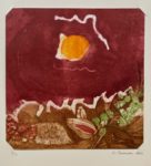 In-4, en feuilles, emboîtage orangé. Livre de recette illustré de 28 eaux-fortes et aquatintes originales d'André Besançon, Michèle Beugnet, Christine Bourgeois, Laurence Chartrain, Christine Cornette, Martine Delastre, Sylvain Durbecq, Nello Franchi, Claudine Herviou, Évelyne Pernet, Geneviève Schwartz, Ulrike Vidalain et Lise Voisin.
