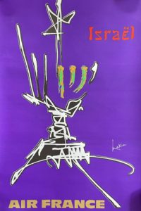 Paris, Air France, imprimeries Pietrini Bastard Fouqueray, [1967]. 12 affiches, chacune de 1 m x 60 cm. Affiches réalisées en 1967 par le peintre Georges Mathieu à la demande d'Air France pour une campagne publicitaire. Ces affiches représentent certains symboles connus de chaque pays illustré : Italie – Amérique du Sud – Égypte – Japan – Grande-Bretagne – Allemagne – Inde – France – Canada – Israël – Mexico – Spain.
