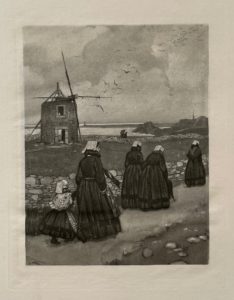 MAUCLAIR (Camille). Âmes bretonnes. Paris, Piazza, 1907. In-8, broché, étui. Ouvrage illustré de 50 compositions en couleur de Jacques Wély. Tirage limité à 300 exemplaires, celui-ci un des 30 sur japon contenant une suite en noir sur Rives.