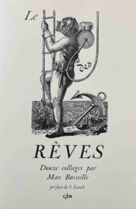 3 plaquettes in-8, dont 2 en feuilles et une brochée. Les Pays égarés. Paris, Le Loup Pendu, Debresse, 1937. Un des 200 numérotés sur papier du Roy Louis vert Berry. – Les Cris de la fée. Paris, G.L.M., 1939. 16 collages reproduits. Tirage à 650 exemplaires, celui-ci un des 600 sur vélin. – Rêves. Douze collages. Paris, GLM, 1950. Édition originale, tirée à 500 exemplaires.