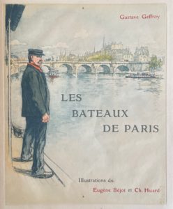 GEFFROY (Gustave). Les Bateaux de Paris. Paris, Charles Bosse libraire, 1903. In-4, en feuilles, couverture imprimée, non rogné, emboîtage. Édition originale illustrée de 24 compositions d'Eugène Béjot et Charles Huard. Tirage à 184 exemplaires, celui-ci un des 150 exemplaires sur vergé à la cuve van Gelder.